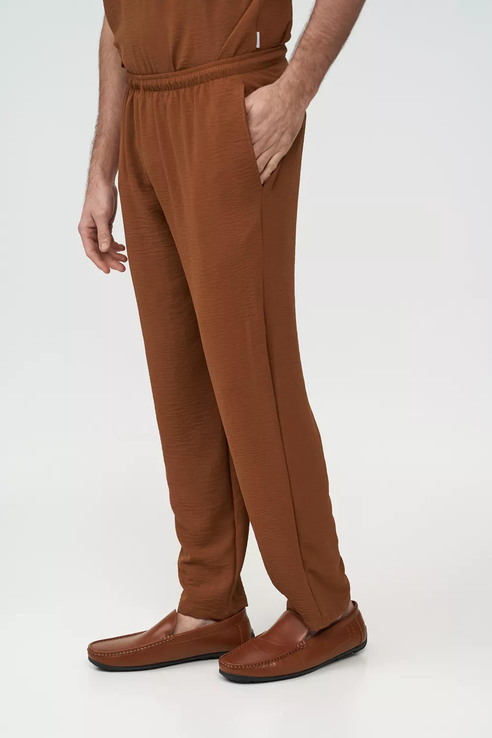 Παντελόνι με λάστιχο και ρυθμιζόμενο κορδόνι στη μέση και δύο τσέπες.