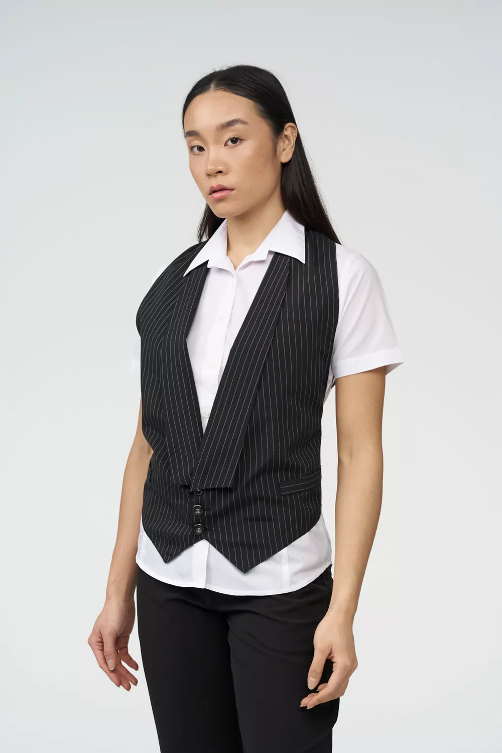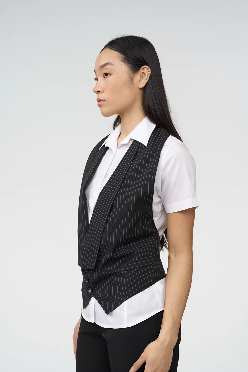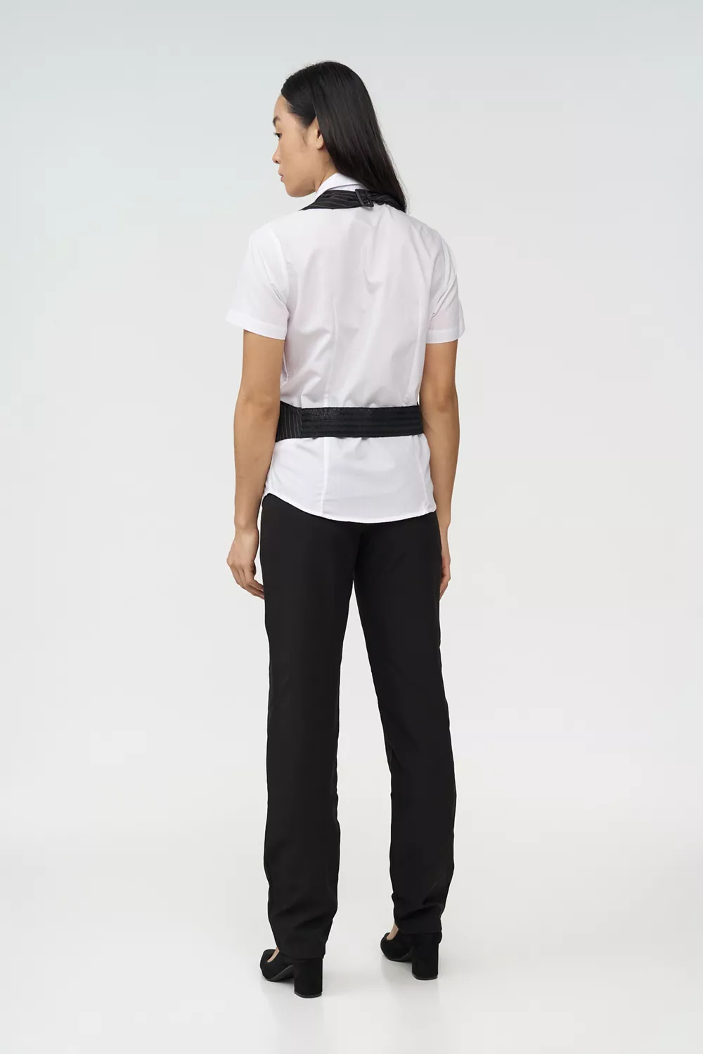 Το σετ περιλαμβάνει κοντομάνικο πουκάμισο με κλασική γραμμή, παντελόνι με λάστιχο στη μέση και θηλύκια για ζώνη, καθώς και κλασικό γιλέκο. Το παντελόνι προσφέρει εύκολη προσαρμογή σε διαφορετικούς σωματότυπους, ενώ το γιλέκο ολοκληρώνει το σύνολο με κομψή και επαγγελματική εμφάνιση, κατάλληλη για προσωπικό service και bar.