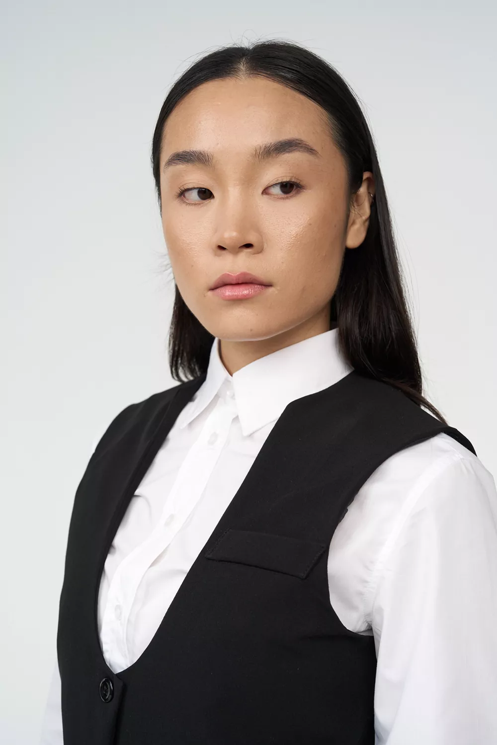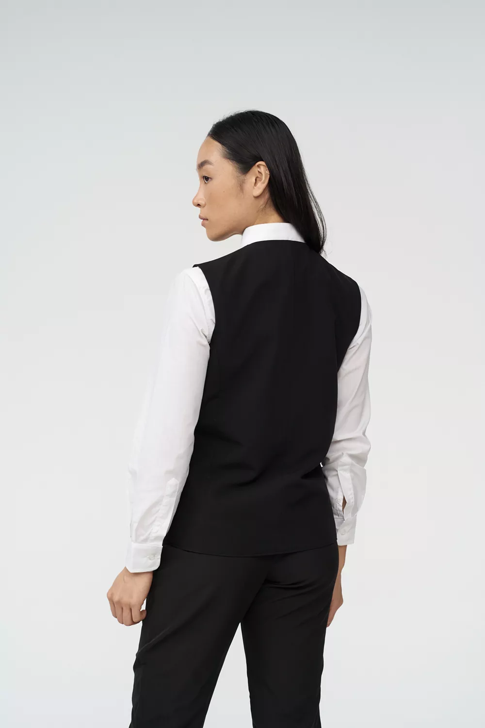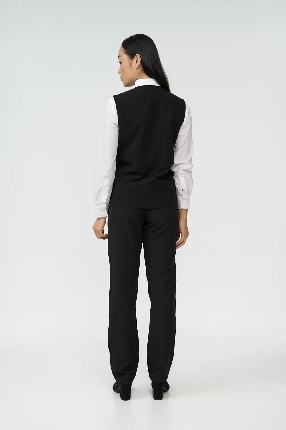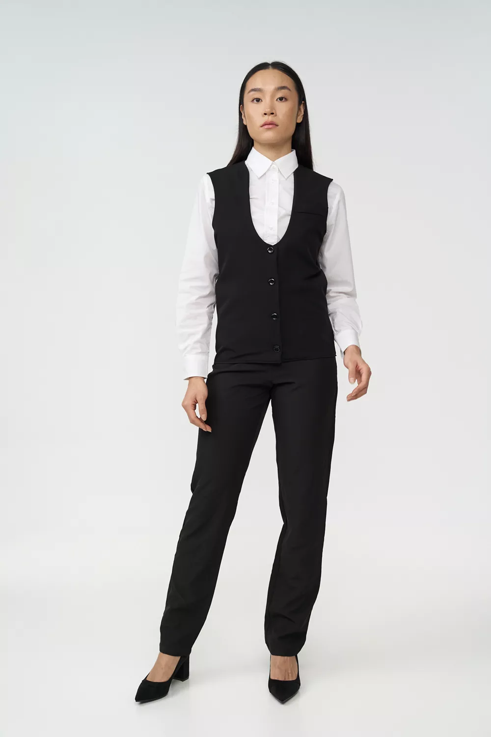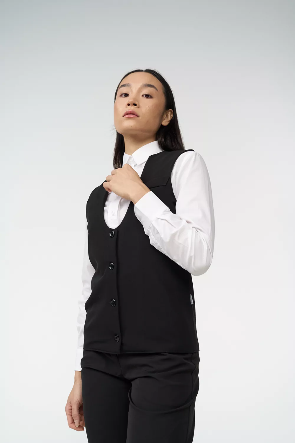 Το σετ περιλαμβάνει μακρυμάνικο πουκάμισο, παντελόνι με μισή σταθερή και μισή ελαστική ζώνη για εύκολη προσαρμογή σε περισσότερες μετρήσεις μέσης, καθώς και αμάνικο γιλέκο που ολοκληρώνει την επαγγελματική εικόνα. Η συνδυαστική αυτή γραμμή προσφέρει άνετη εφαρμογή σε διαφορετικούς σωματότυπους, διατηρώντας παράλληλα κομψότητα και λειτουργικότητα.