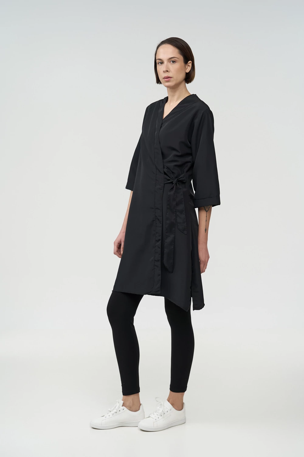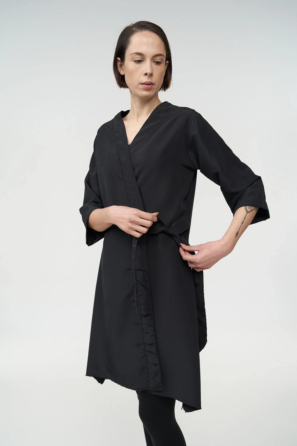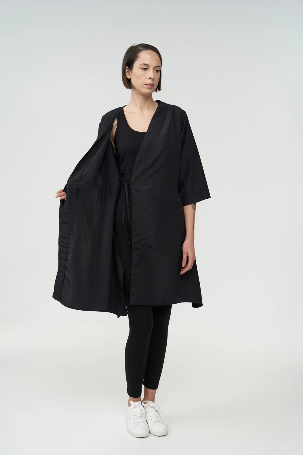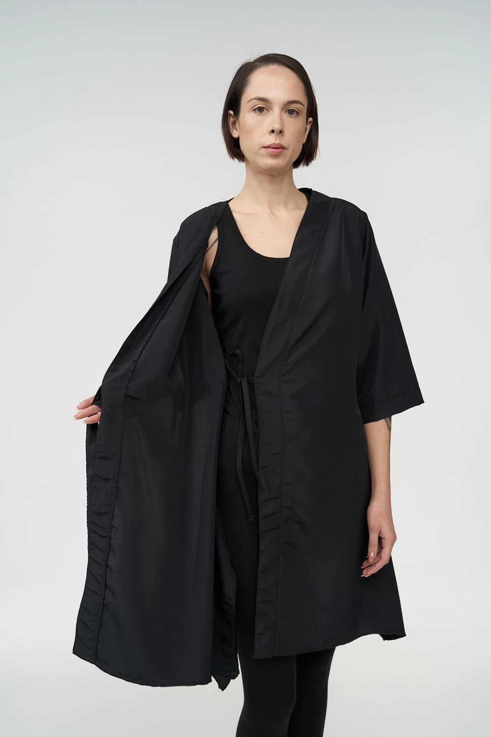 Η ρόμπα κιμονό εφαρμόζει άνετα στο σώμα και φοριέται εύκολα από την πελάτισσα, προσφέροντας πρακτική κάλυψη και ελευθερία κινήσεων. Προστατεύει αποτελεσματικά τα ρούχα από βαφές, νερό και προϊόντα styling, καθιστώντας τη κατάλληλη για επαγγελματική χρήση σε απαιτητικά περιβάλλοντα ομορφιάς και ευεξίας.