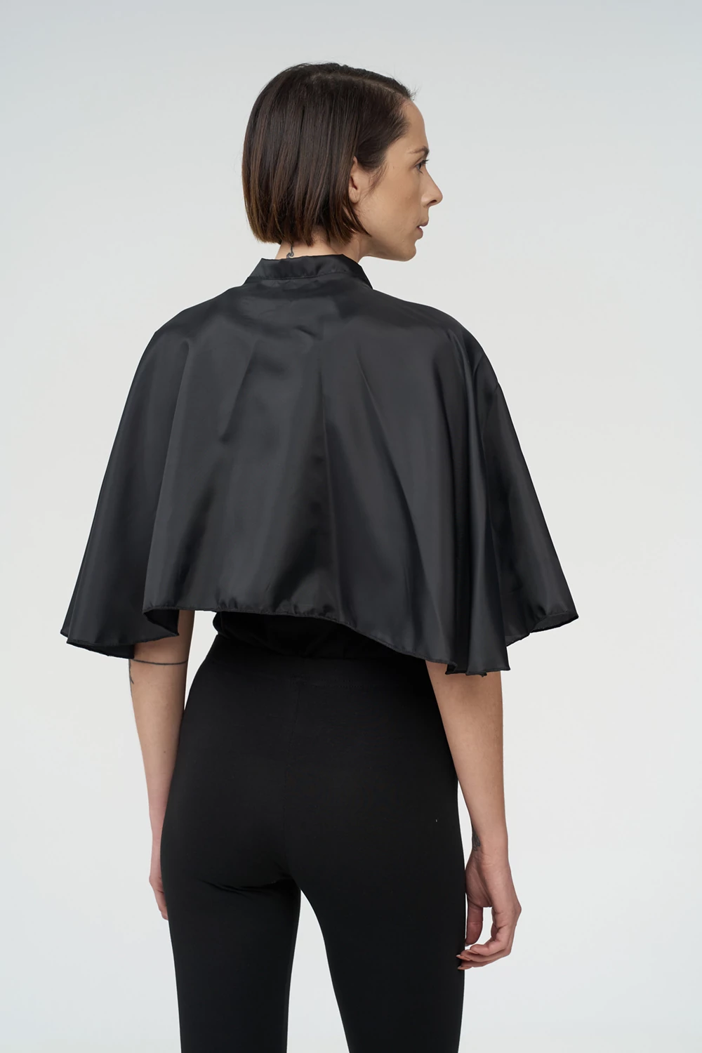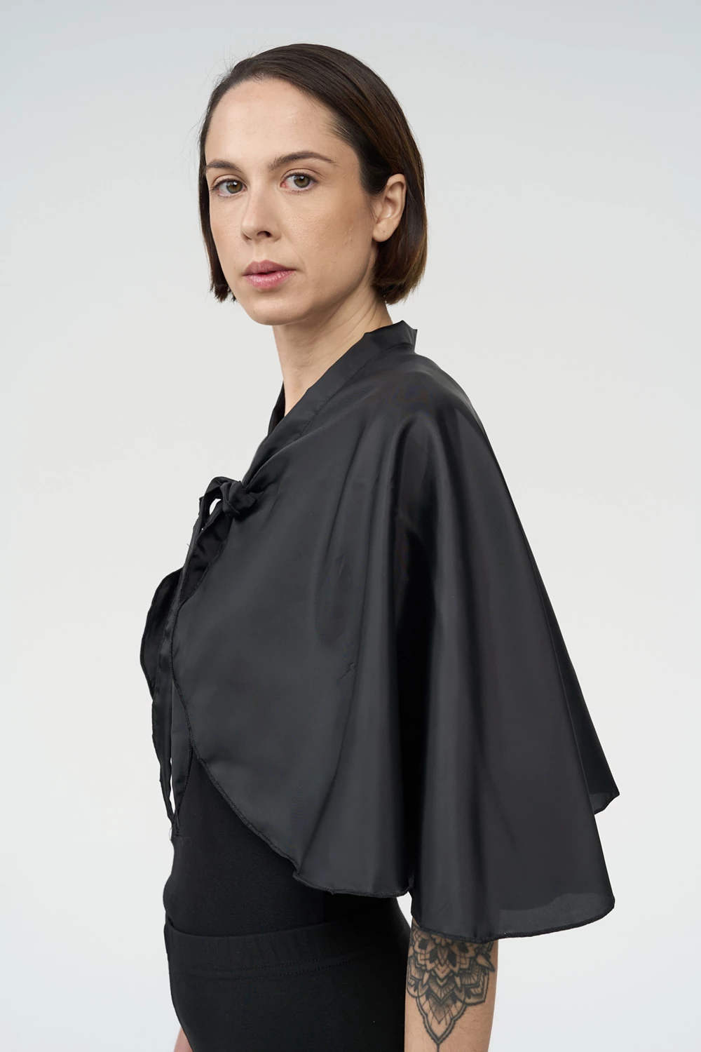 Το κοντό μήκος της επιτρέπει πλήρη ελευθερία κινήσεων και ευκολία στη χρήση, χωρίς να ενοχλεί τον πελάτη, εξασφαλίζοντας ταυτόχρονα καθαρή και προσεγμένη εμφάνιση.Κλείνει εύκολα στο λαιμό και εφαρμόζει σε κάθε σωματότυπο.