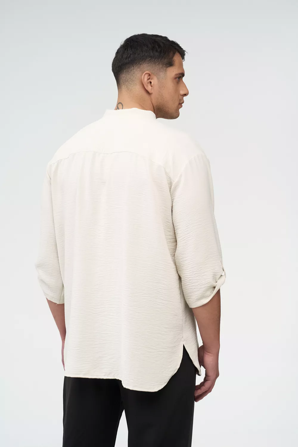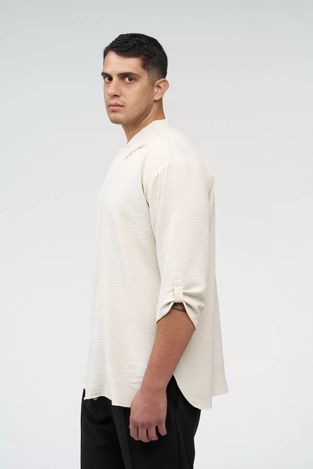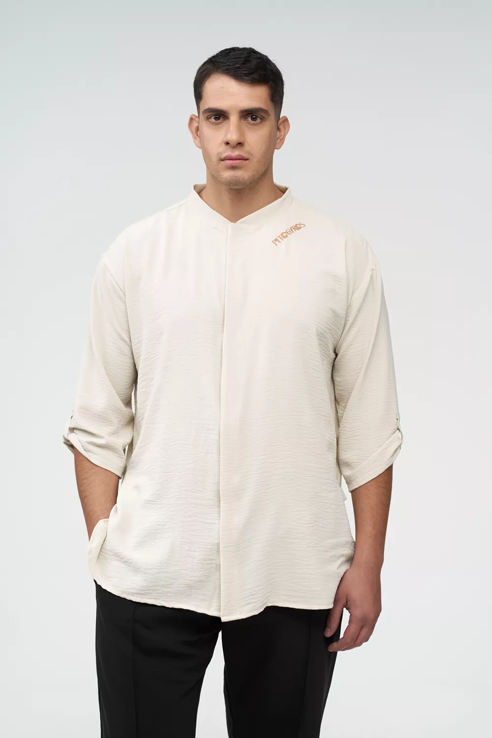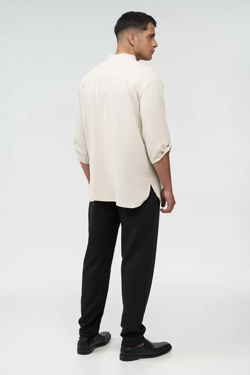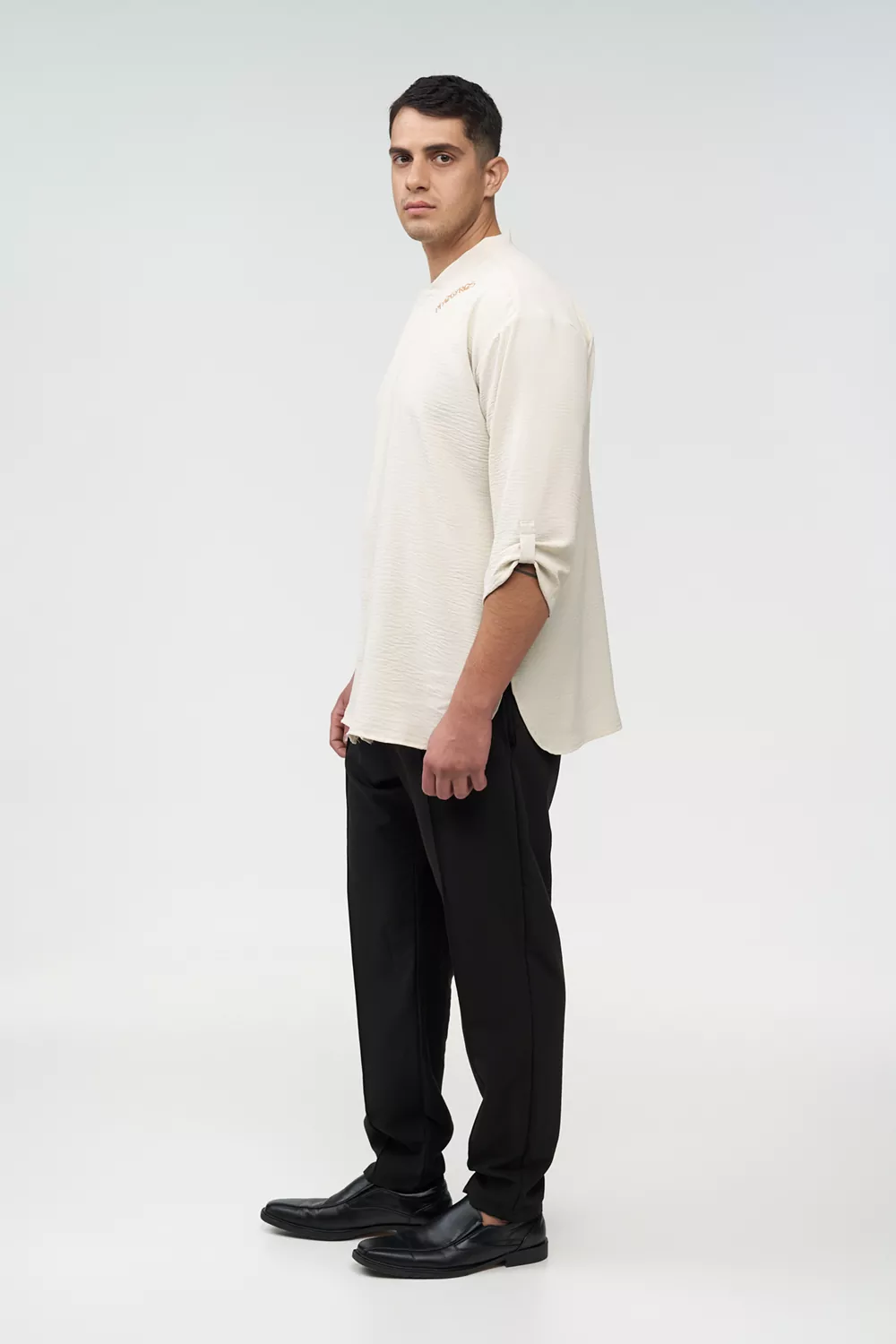 Το σετ περιλαμβάνει πουκάμισο ¾ μανίκι με γλωσσάκι για αυξομείωση του μανικιού, κρυφό κούμπωμα και γιακά κολλεγίου, προσφέροντας προσεγμένη και επαγγελματική εμφάνιση.