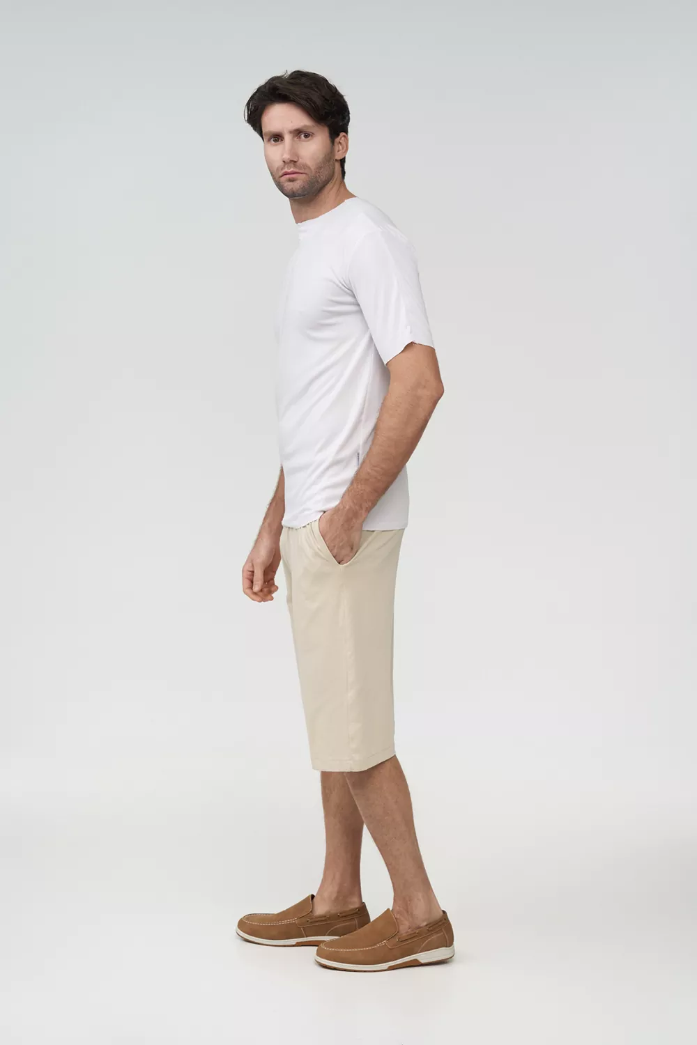 Η βερμούδα διαθέτει δύο τσέπες και λάστιχο στη μέση για άνετη εφαρμογή, καλύπτοντας διαφορετικούς σωματότυπους και εξασφαλίζοντας ευκολία κινήσεων.Μπορεί να συνδιαστεί με παντελόνι crop