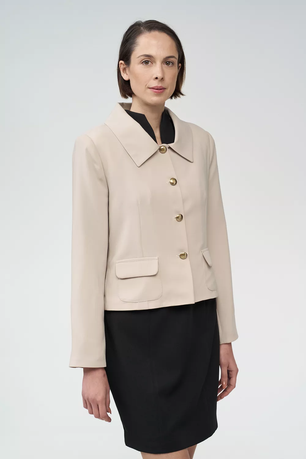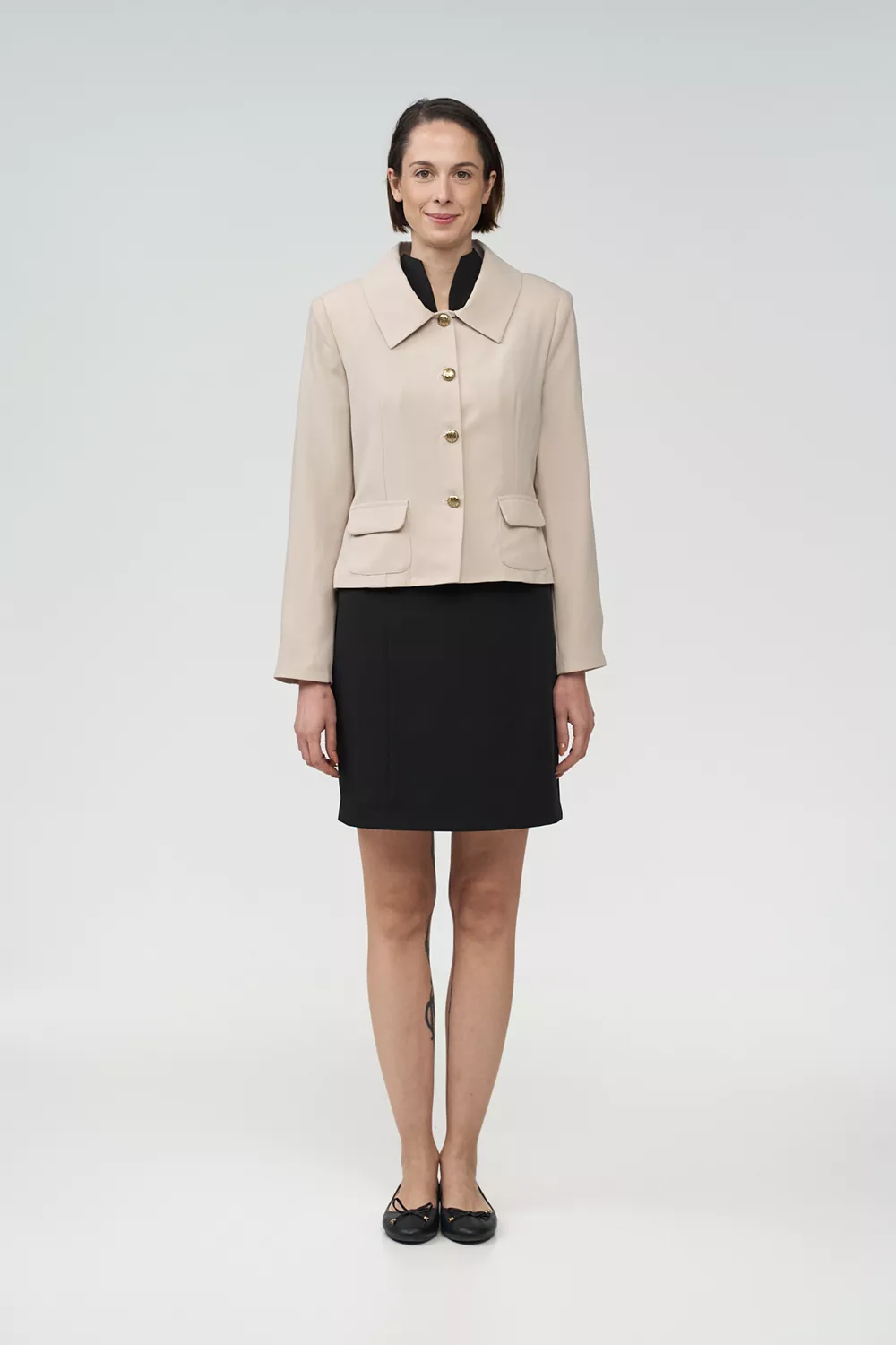 Ο σχεδιασμός του σακακιού και του φορέματος εξασφαλίζει άνετη εφαρμογή και ευκολία κινήσεων καθ’ όλη τη διάρκεια της εργασίας, ενώ αναδεικνύει κομψό και σύγχρονο στυλ.