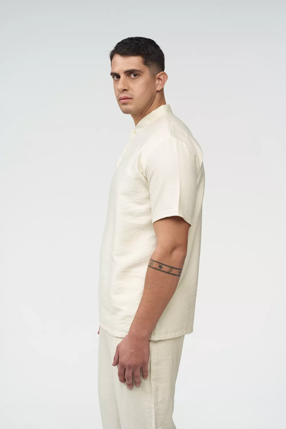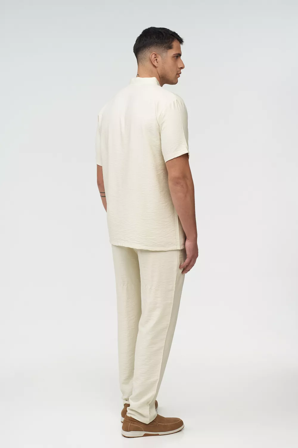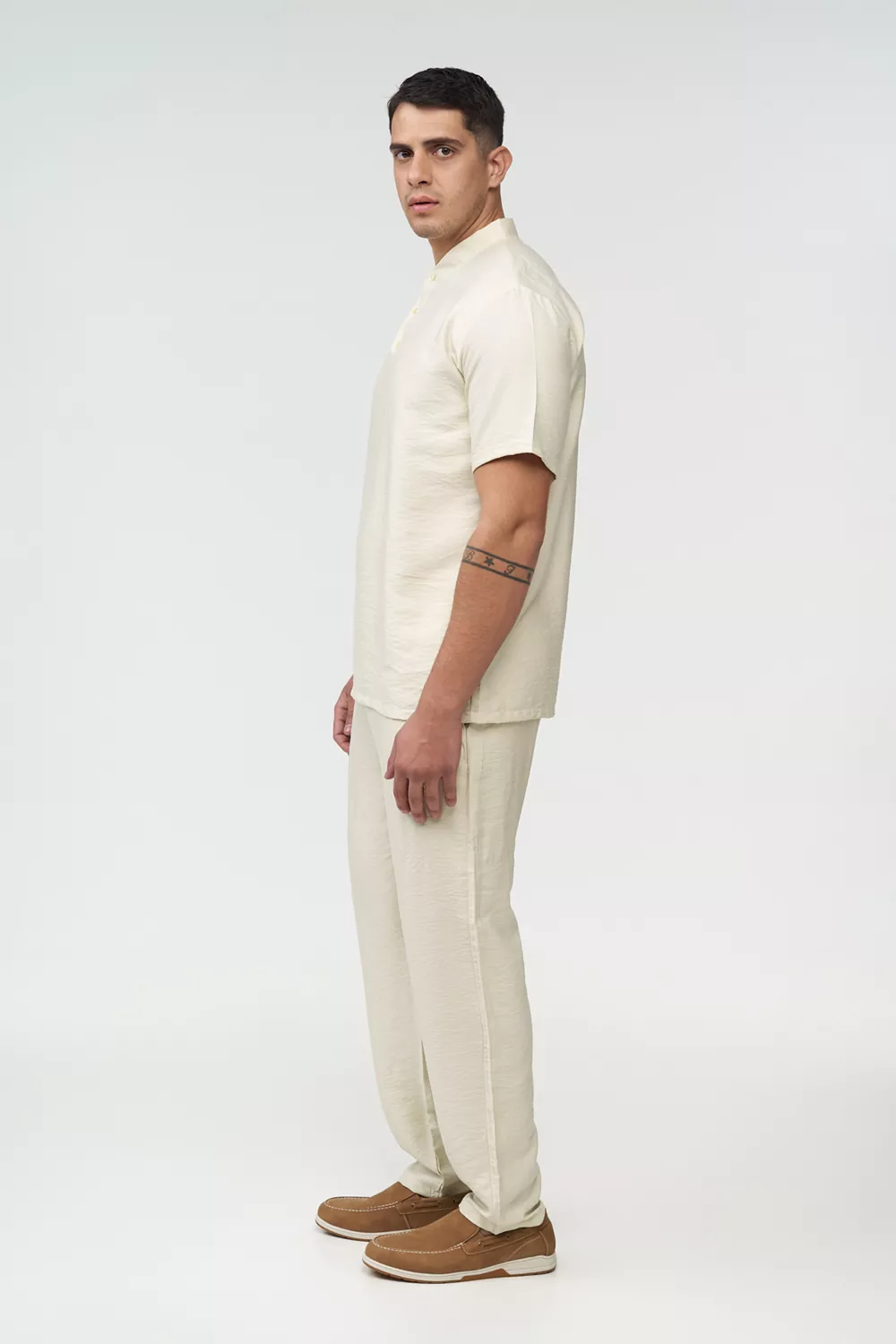 Σετ επαγγελματικής ένδυσης unisex για προσωπικό beach bar που συνδυάζει άνεση, κομψότητα και πρακτικότητα, ιδανικό για σερβιτόρους, bartenders και προσωπικό hospitality σε παραθαλάσσιους χώρους.