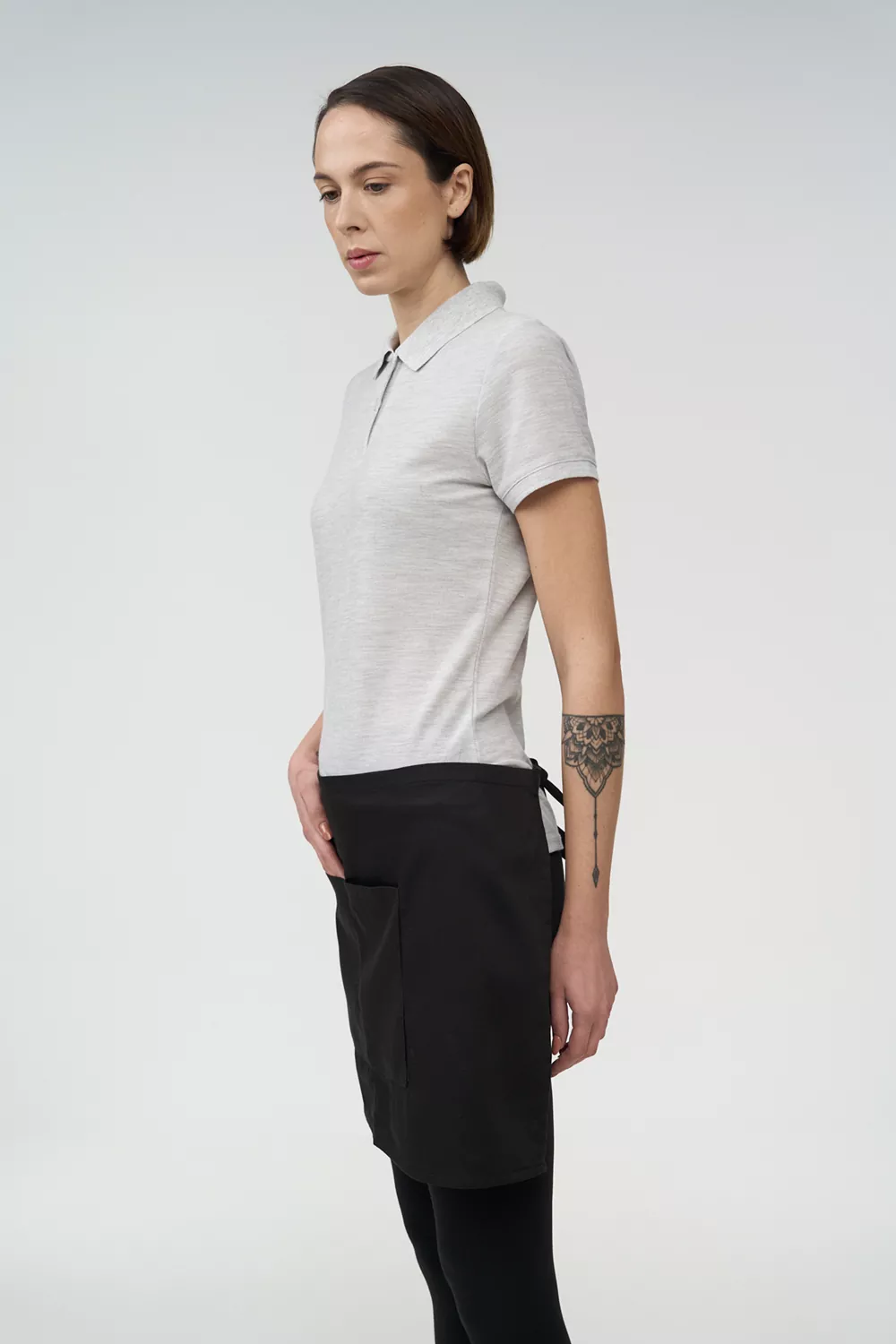 Συνδυάζεται με δίτσεπη ποδιά, προσφέροντας πρακτικότητα και ολοκληρωμένη εμφάνιση εργασίας.